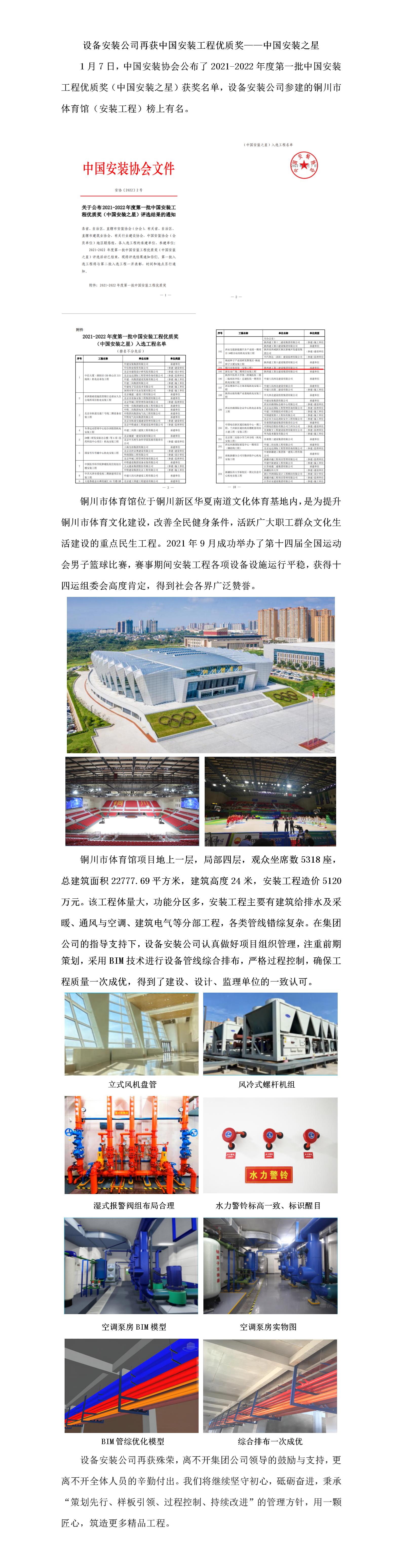 集團公司獲中國安裝工程優質獎——中國安裝之星