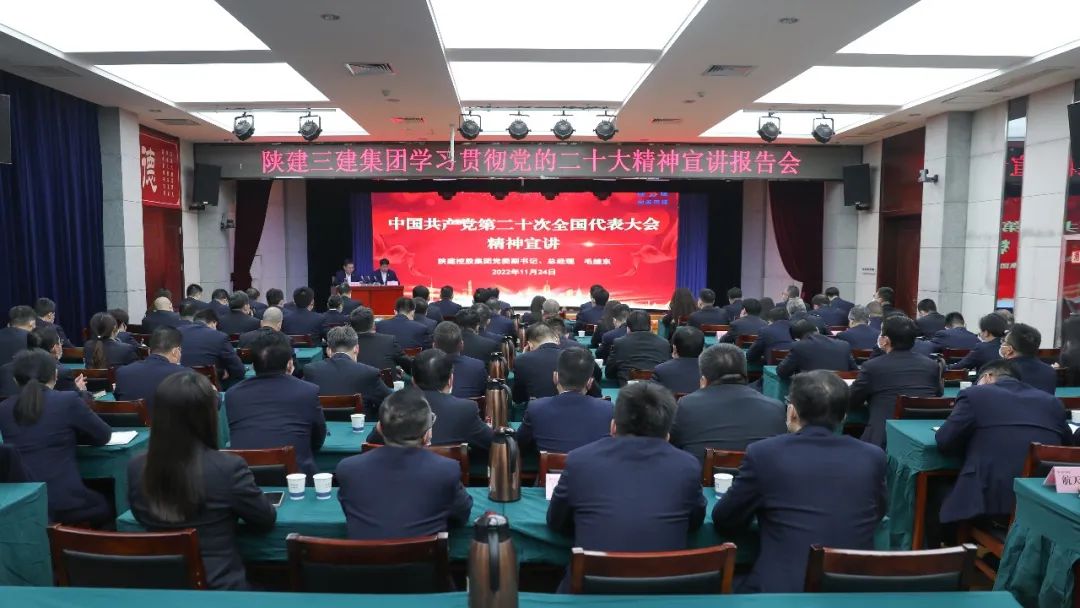 11月24日下午,陜建控股集團黨的二十大精神宣講團成員、陜建控股集團黨委副書記、總經(jīng)理毛繼東走進陜建三建集團作“黨的二十大精神”專題宣講,陜建控股集團黨委組織部部長、人力資源部經(jīng)理李維龍,黨政辦公室副主任史亞輝參加宣講會,會議由三建集團黨委書記、董事長李家衛(wèi)主持。