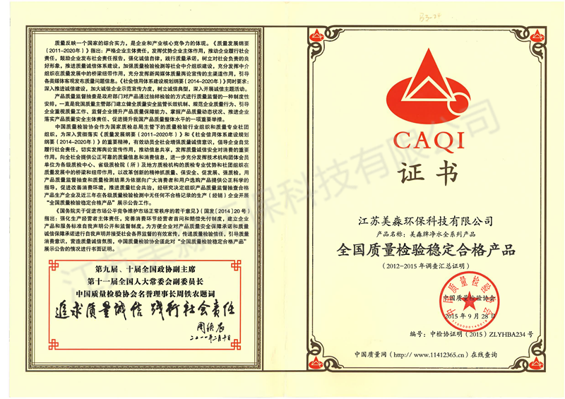 2015年全國質(zhì)量檢驗穩(wěn)定合格產(chǎn)品