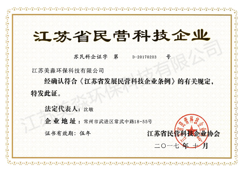 江蘇省民營科技企業證書