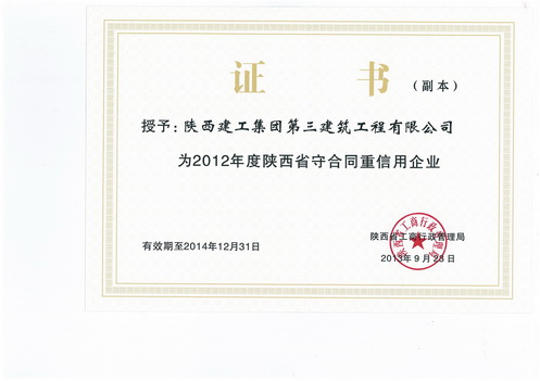 陜西省守合同重信用企業