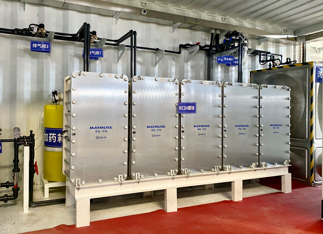 美淼環(huán)保自主研發(fā)的第三代電容電吸附技術產(chǎn)品——RCDI工業(yè)首臺套設備成功下線,順利完成交付